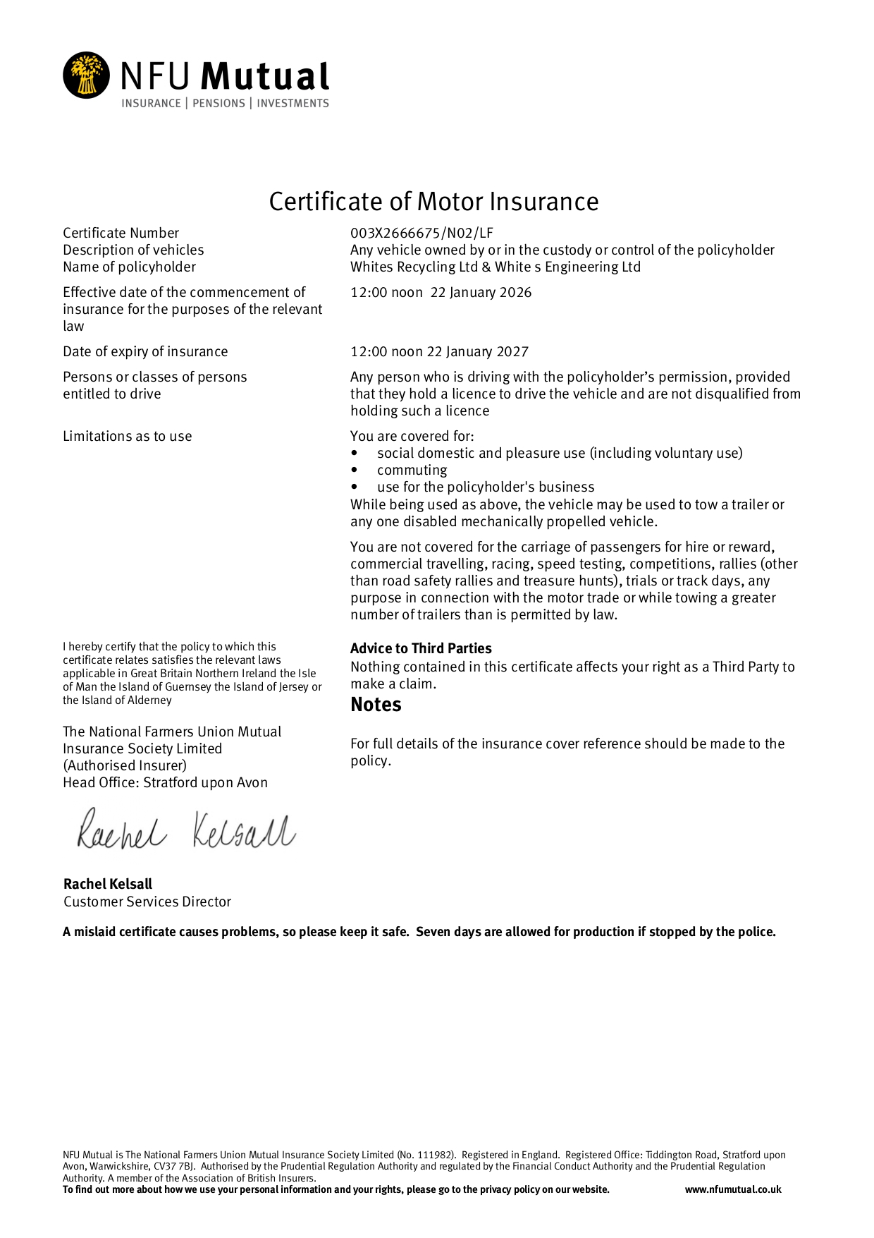 Certificate of Motor Insurance